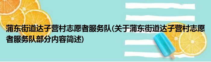 蒲东街道达子营村志愿者服务队(关于蒲东街道达子营村志愿者服务队部分内容简述)