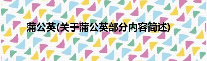 大家好,今天小方来说说一篇关于蒲公英,关于蒲公英部分内容简述的文章,那么现在就为大家来简单介绍下,希望对各位小伙伴们有所帮助。