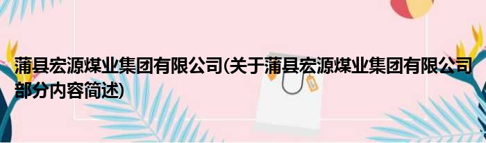 蒲县宏源煤业集团有限公司(关于蒲县宏源煤业集团有限公司部分内容简述)