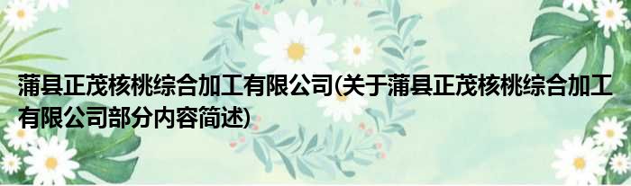 蒲县正茂核桃综合加工有限公司(关于蒲县正茂核桃综合加工有限公司部分内容简述)