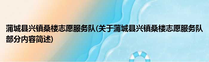 蒲城县兴镇桑楼志愿服务队(关于蒲城县兴镇桑楼志愿服务队部分内容简述)