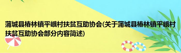 蒲城县椿林镇平峨村扶贫互助协会(关于蒲城县椿林镇平峨村扶贫互助协会部分内容简述)