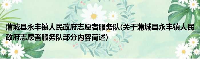蒲城县永丰镇人民政府志愿者服务队(关于蒲城县永丰镇人民政府志愿者服务队部分内容简述)