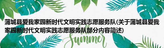 蒲城县爱我家园新时代文明实践志愿服务队(关于蒲城县爱我家园新时代文明实践志愿服务队部分内容简述)