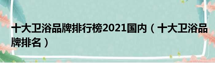 十大卫浴品牌排行榜2021国内(十大卫浴品牌排名)