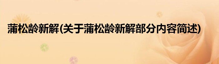 大家好,今天小方来说说一篇关于蒲松龄新解,关于蒲松龄新解部分内容简述的文章,那么现在就为大家来简单介绍下,希望对各位小伙伴们有所帮助。