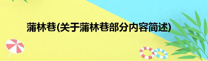 蒲林巷(关于蒲林巷部分内容简述)