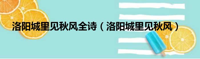 洛阳城里见秋风全诗(洛阳城里见秋风)