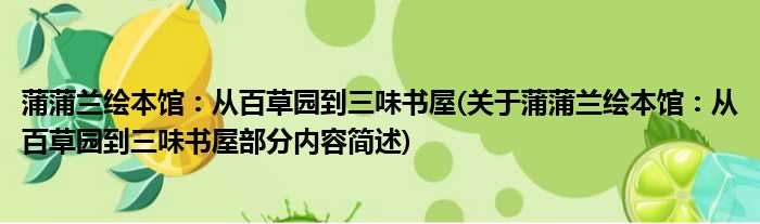 蒲蒲兰绘本馆:从百草园到三味书屋(关于蒲蒲兰绘本馆:从百草园到三味书屋部分内容简述)