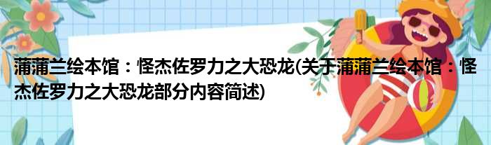 大家好,今天小方来说说一篇关于蒲蒲兰绘本馆:怪杰佐罗力之大恐龙,关于蒲蒲兰绘本馆:怪杰佐罗力之大恐龙部分内容简述的文章,那么现在就为大家来简单介绍下,希望对各位小伙伴们有所帮助。