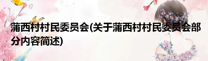 蒲西村村民委员会(关于蒲西村村民委员会部分内容简述)