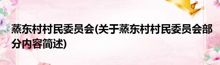 蒸东村村民委员会(关于蒸东村村民委员会部分内容简述)