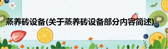 蒸养砖设备(关于蒸养砖设备部分内容简述)