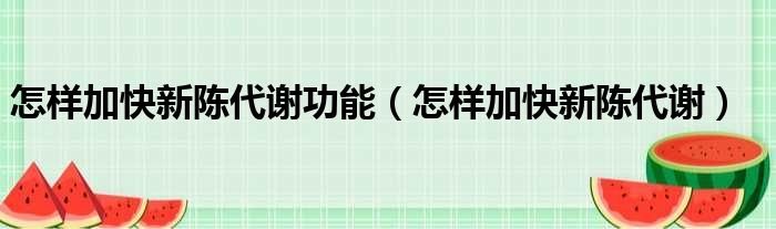 怎样加快新陈代谢功能(怎样加快新陈代谢)