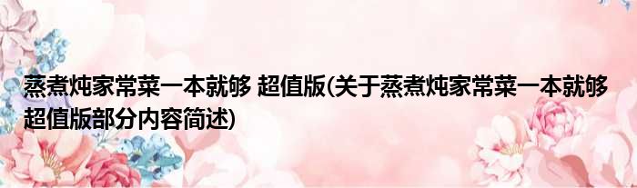 大家好,今天小方来说说一篇关于蒸煮炖家常菜一本就够 超值版,关于蒸煮炖家常菜一本就够 超值版部分内容简述的文章,那么现在就为大家来简单介绍下,希望对各位小伙伴们有所帮助。