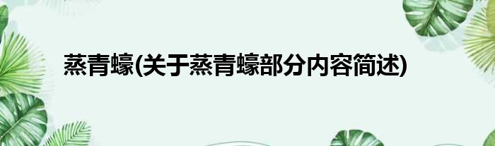 蒸青蠔(关于蒸青蠔部分内容简述)
