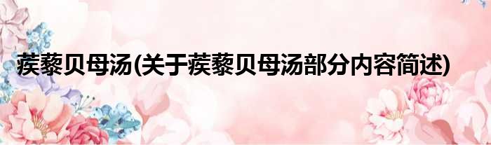 导读 大家好,今天小方来说说一篇关于蒺藜贝母汤,关于蒺藜贝母汤部分内容简述的文章,那么现在就为大家来简单介绍下,希望对各位小伙伴们有所帮