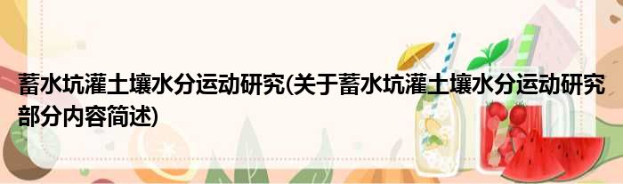 蓄水坑灌土壤水分运动研究(关于蓄水坑灌土壤水分运动研究部分内容简述)