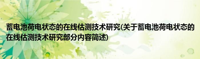 蓄电池荷电状态的在线估测技术研究(关于蓄电池荷电状态的在线估测技术研究部分内容简述)
