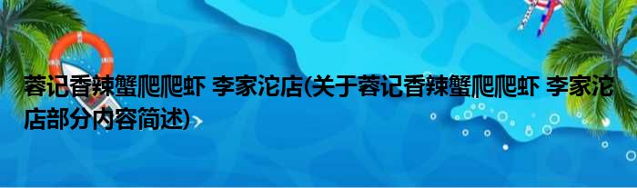 蓉记香辣蟹爬爬虾 李家沱店(关于蓉记香辣蟹爬爬虾 李家沱店部分内容简述)