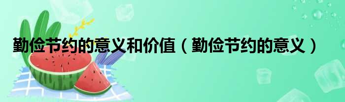 导读 大家好,小活来为大家解答以上的问题。勤俭节约的意义和价值,勤俭节约的意义这个很多人还不知道,现在让我们一起来看看吧!1、随着经济的发