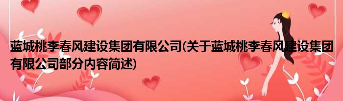 大家好,今天小方来说说一篇关于蓝城桃李春风建设集团有限公司,关于蓝城桃李春风建设集团有限公司部分内容简述的文章,那么现在就为大家来简单介绍下,希望对各位小伙伴们有所帮助。