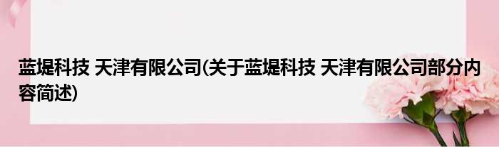 蓝堤科技 天津有限公司(关于蓝堤科技 天津有限公司部分内容简述)