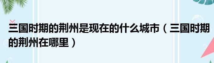 三国时期的荆州是现在的什么城市(三国时期的荆州在哪里)