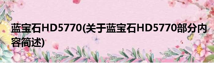 蓝宝石HD5770(关于蓝宝石HD5770部分内容简述)