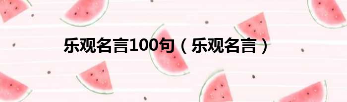 乐观名言100句(乐观名言)