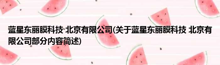 蓝星东丽膜科技 北京有限公司(关于蓝星东丽膜科技 北京有限公司部分内容简述)