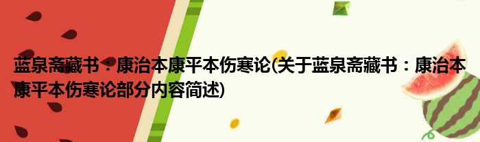大家好,今天小方来说说一篇关于蓝泉斋藏书:康治本康平本伤寒论,关于蓝泉斋藏书:康治本康平本伤寒论部分内容简述的文章,那么现在就为大家来简单介绍下,希望对各位小伙伴们有所帮助。