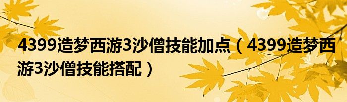 导读 大家好,小活来为大家解答以上的问题。4399造梦西游3沙僧技能加点,4399造梦西游3沙僧技能搭配这个很多人还不知道,现在让我们一起来看看吧!
