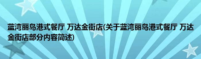 蓝湾丽岛港式餐厅 万达金街店(关于蓝湾丽岛港式餐厅 万达金街店部分内容简述)
