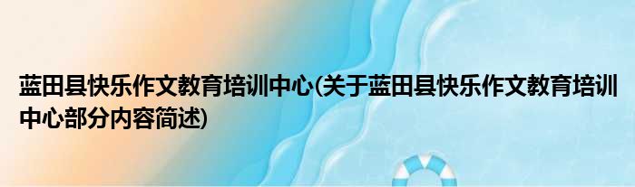 蓝田县快乐作文教育培训中心(关于蓝田县快乐作文教育培训中心部分内容简述)