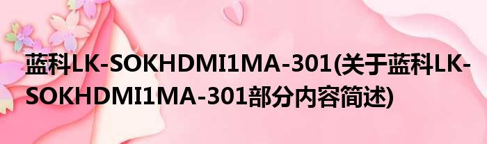 蓝科LK-SOKHDMI1MA-301(关于蓝科LK-SOKHDMI1MA-301部分内容简述)