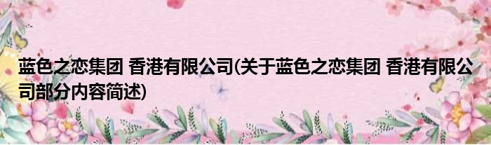 导读 大家好,今天小方来说说一篇关于蓝色之恋集团 香港有限公司,关于蓝色之恋集团 香港有限公司部分内容简述的文章,那么现在就为大家来简单