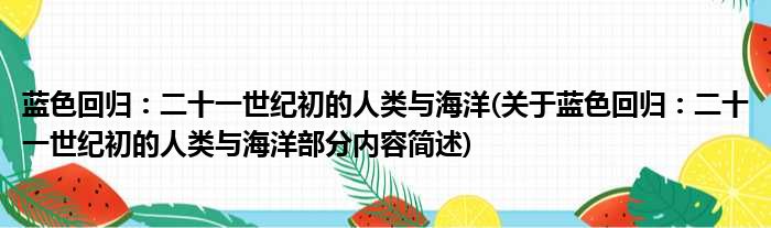 蓝色回归:二十一世纪初的人类与海洋(关于蓝色回归:二十一世纪初的人类与海洋部分内容简述)