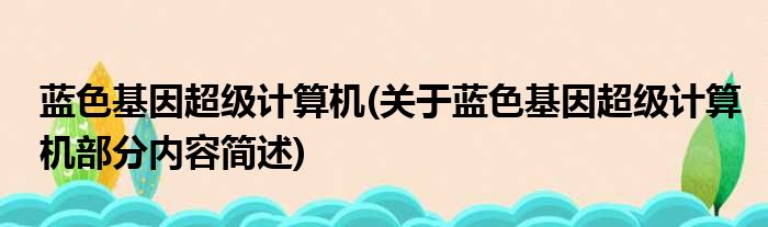 蓝色基因超级计算机(关于蓝色基因超级计算机部分内容简述)