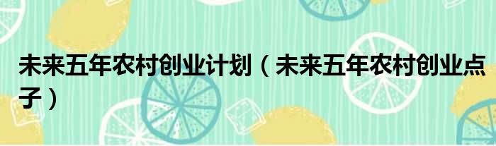 大家好,小活来为大家解答以上的问题。未来五年农村创业计划,未来五年农村创业点子这个很多人还不知道,现在让我们一起来看看吧!