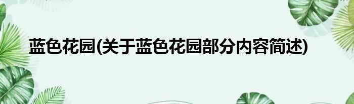 导读 大家好,今天小方来说说一篇关于蓝色花园,关于蓝色花园部分内容简述的文章,那么现在就为大家来简单介绍下,希望对各位小伙伴们有所帮助。