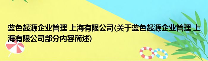 导读 大家好,今天小方来说说一篇关于蓝色起源企业管理 上海有限公司,关于蓝色起源企业管理 上海有限公司部分内容简述的文章,那么现在就为大