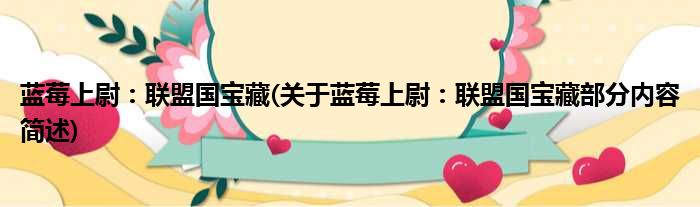 蓝莓上尉:联盟国宝藏(关于蓝莓上尉:联盟国宝藏部分内容简述)