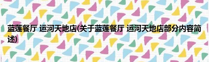 蓝莲餐厅 运河天地店(关于蓝莲餐厅 运河天地店部分内容简述)