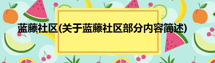 蓝藤社区(关于蓝藤社区部分内容简述)