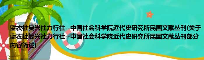 蓝衣社复兴社力行社--中国社会科学院近代史研究所民国文献丛刊(关于蓝衣社复兴社力行社--中国社会科学院近代史研究所民国文献丛刊部分内容简述)