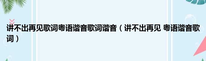 讲不出再见歌词粤语谐音歌词谐音(讲不出再见 粤语谐音歌词)