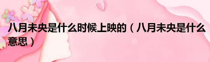 大家好,小活来为大家解答以上的问题。八月未央是什么时候上映的,八月未央是什么意思这个很多人还不知道,现在让我们一起来看看吧!