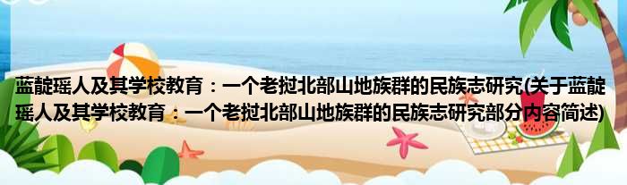 蓝靛瑶人及其学校教育:一个老挝北部山地族群的民族志研究(关于蓝靛瑶人及其学校教育:一个老挝北部山地族群的民族志研究部分内容简述)