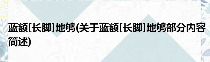 蓝额[长脚]地鸲(关于蓝额[长脚]地鸲部分内容简述)
